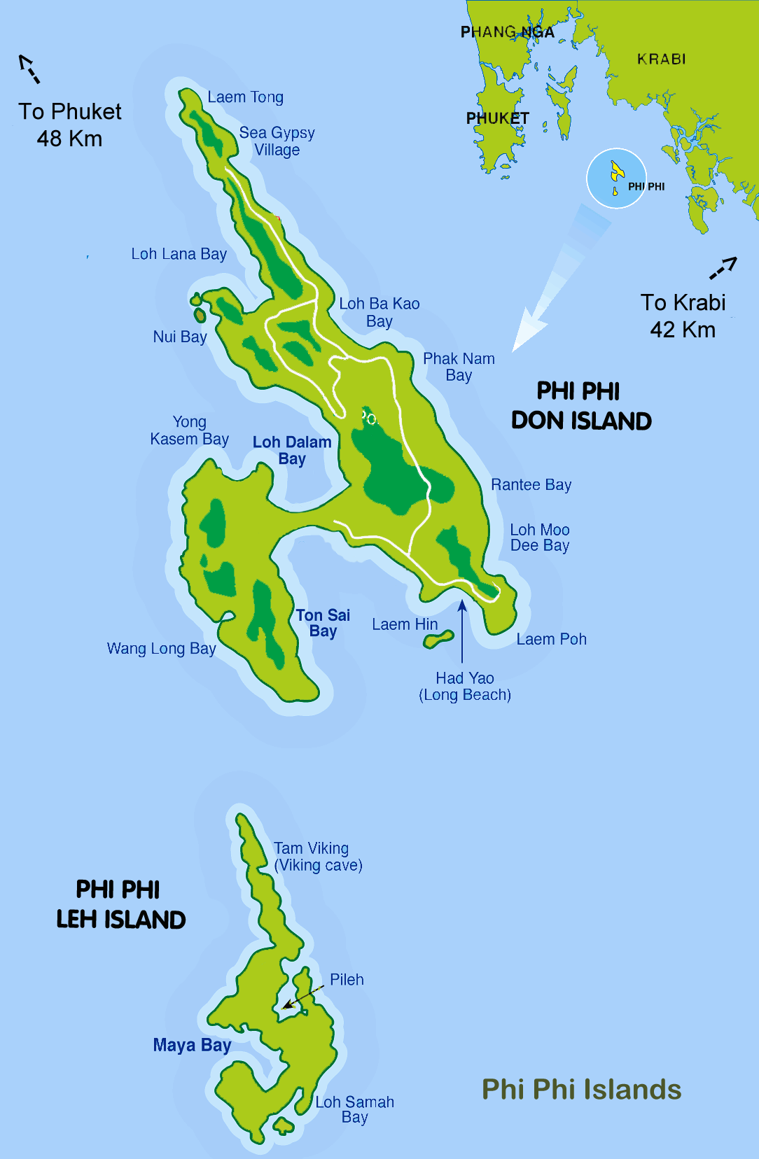 Dado que la estancia debe ser en Koh Phi Phi Don, la visita al resto de las islas se organiza como es habitual mediante excursiones.