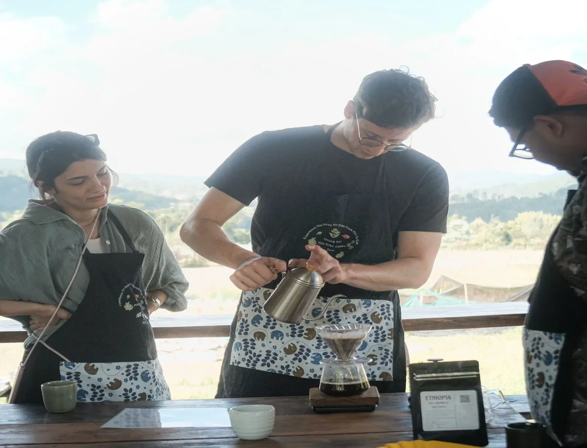 La experiencia es de día completo y se transforma por la tarde, llevándote de explorador a artesano. No solo disfrutarás de un almuerzo casero y genuino, sino que te convertirás en un conocedor total del café: tostarás tus propios granos a mano, crearás una mezcla única para llevar a casa y dominarás la técnica V60 para conseguir esa taza perfecta. Te despedirás llevando contigo no solo café, sino una conexión inolvidable y profunda con la jungla de Chiang Mai.