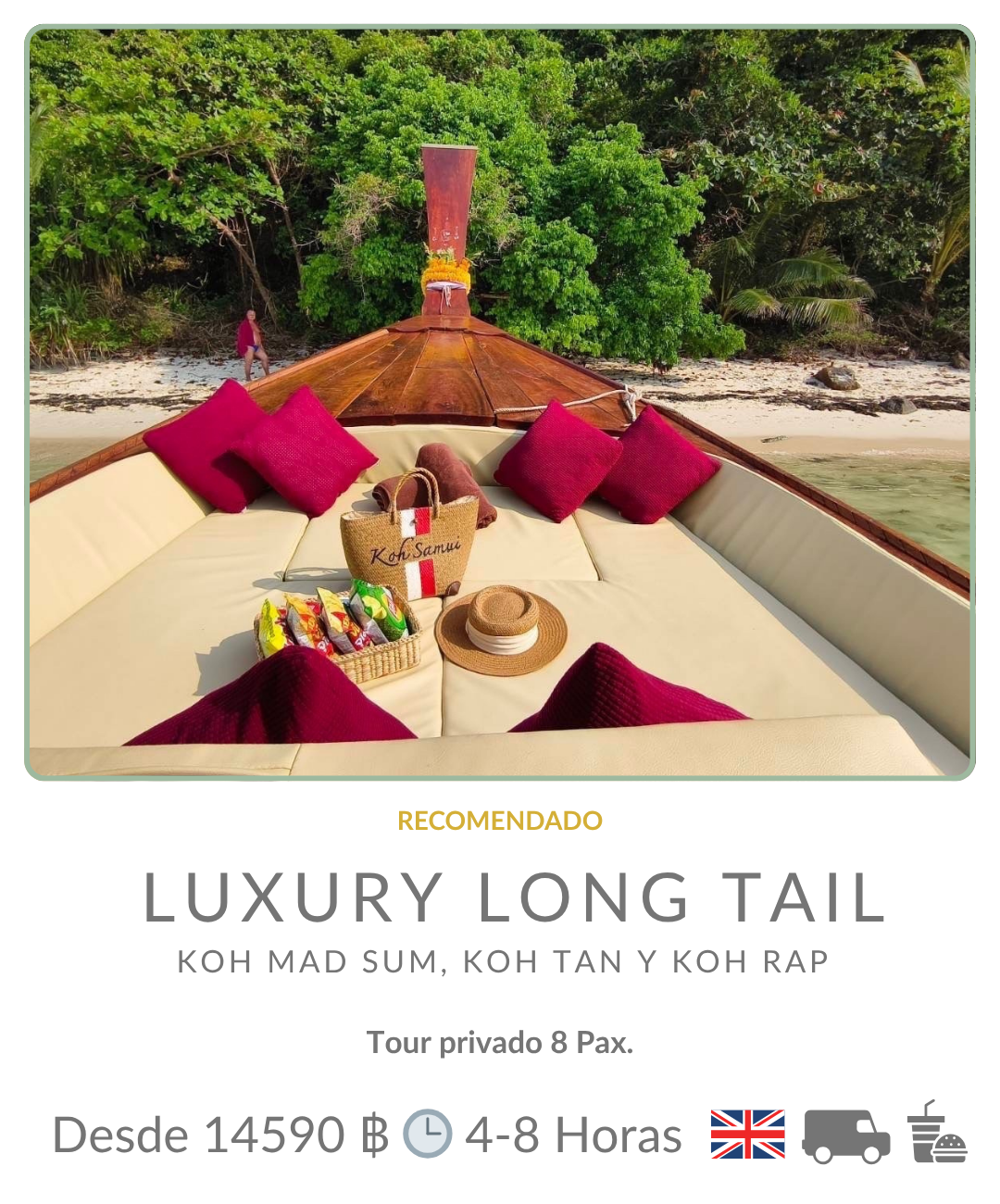 Para que tu experiencia en este increíble destino sea perfecta, en Olé Tours hemos creado una cuidada selección de las mejores excursiones para que explores Koh Samui y el Golfo de Tailandia con total tranquilidad. Cada tour, barco y servicio ha sido probado y verificado personalmente por nosotros para ofrecerte una experiencia tailandesa 100% auténtica, segura y de calidad, con la tranquilidad añadida de contar siempre con nuestro soporte en tiempo real y en tu idioma, para que tu única misión sea disfrutar.