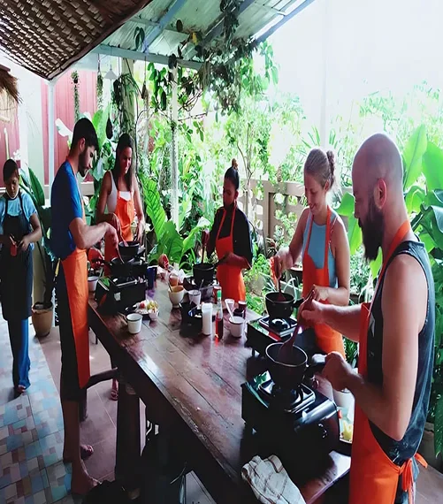 Esta clase de cocina tailandesa, se presenta en un cómodo formato de grupo reducido, aprenderás los secretos de la cocina tradicional de la mano de nuestro chef experto local y dominarás el equilibrio perfecto entre los sabores dulce, salado, ácido y picante que hacen de la comida Thai una de las más amadas del mundo.